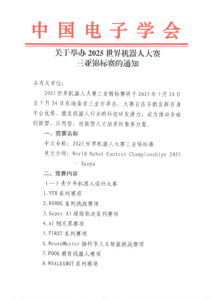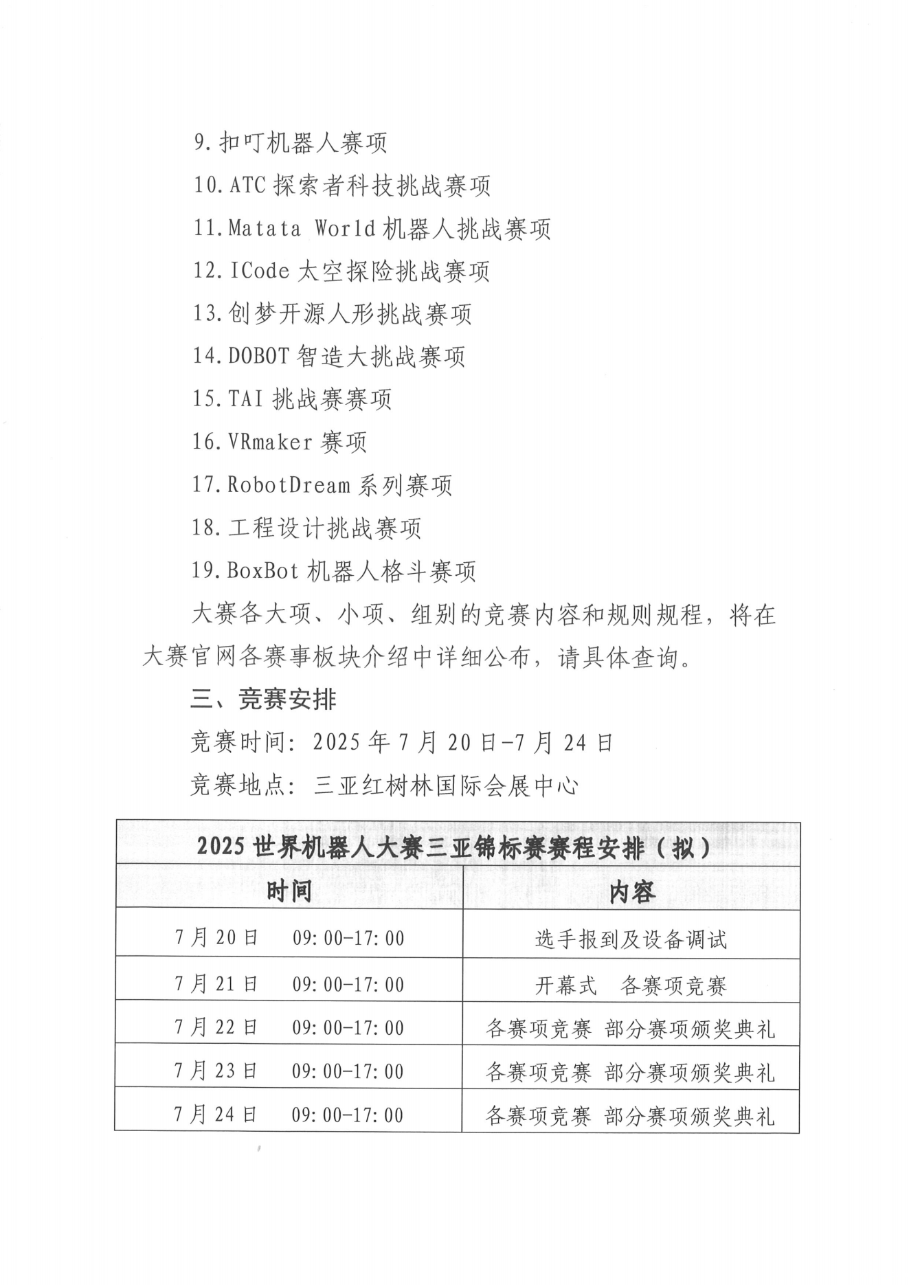 关于举办2025世界机器人大赛三亚锦标赛的通知