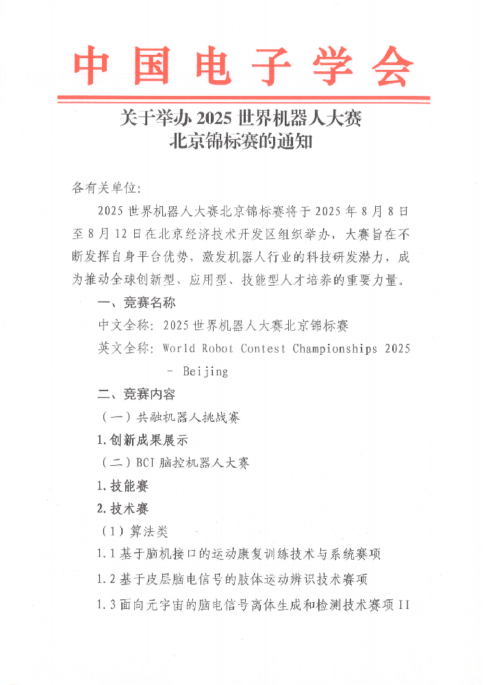 关于举办2025世界机器人大赛北京锦标赛的通知