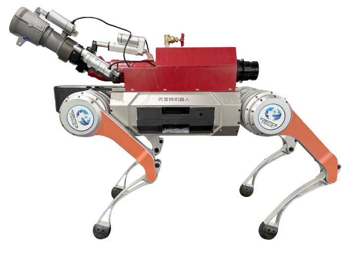 优宝特消防灭火机器狗搭载多功能水炮系统,具备多维度作业能力,在射程指标上,额定工况下最大射程≥60 米;最大喷雾角度可呈 120°扇形扩散,配合水平 ±20°、俯仰 20°-60°的机械调节角度,可实现多角度的精准覆盖。操控采用远程无线控制系统,支持实时指令传输。水炮核心性能表现为直流喷射模式,设置 20L/s、30L/s、40L/s 三档流量调节档位,标配的电控直流喷雾炮头可动态切换直流直射与喷雾覆盖两种作业模式,满足不同火场环境的灭火需求。