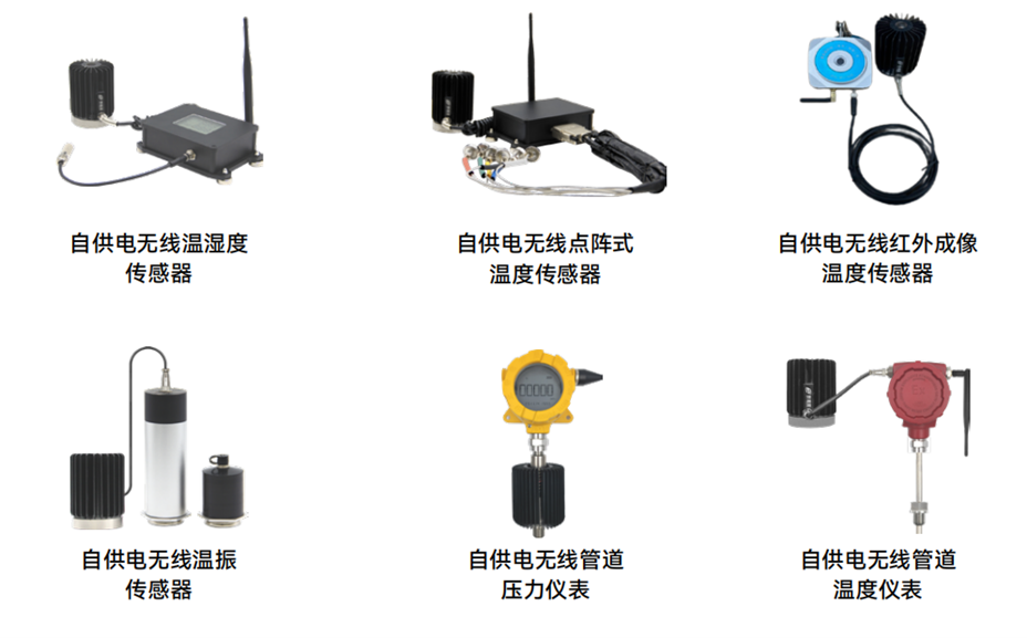 自供电无线温湿度传感器、自供电无线点阵式温度传感器、自供电无线红外成像温度传感器、自供电无线温振传感器、自供电无线管道压力仪表、自供电无线管道温度仪表