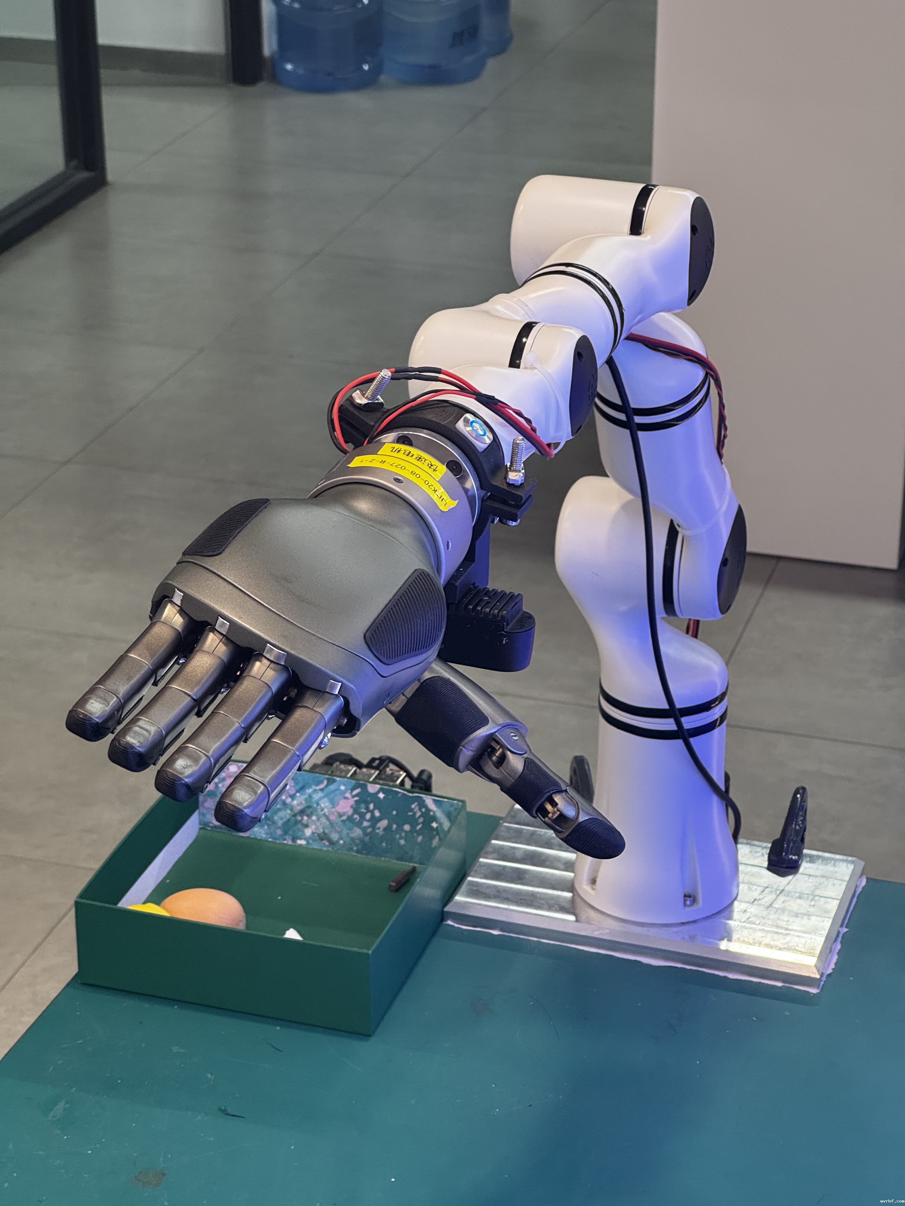 通过机械臂+灵巧手+视觉摄像头的硬件组合,对台面物体进行实时的视觉识别和定位,操控灵巧手变换为最合适的抓取手型并进行抓取