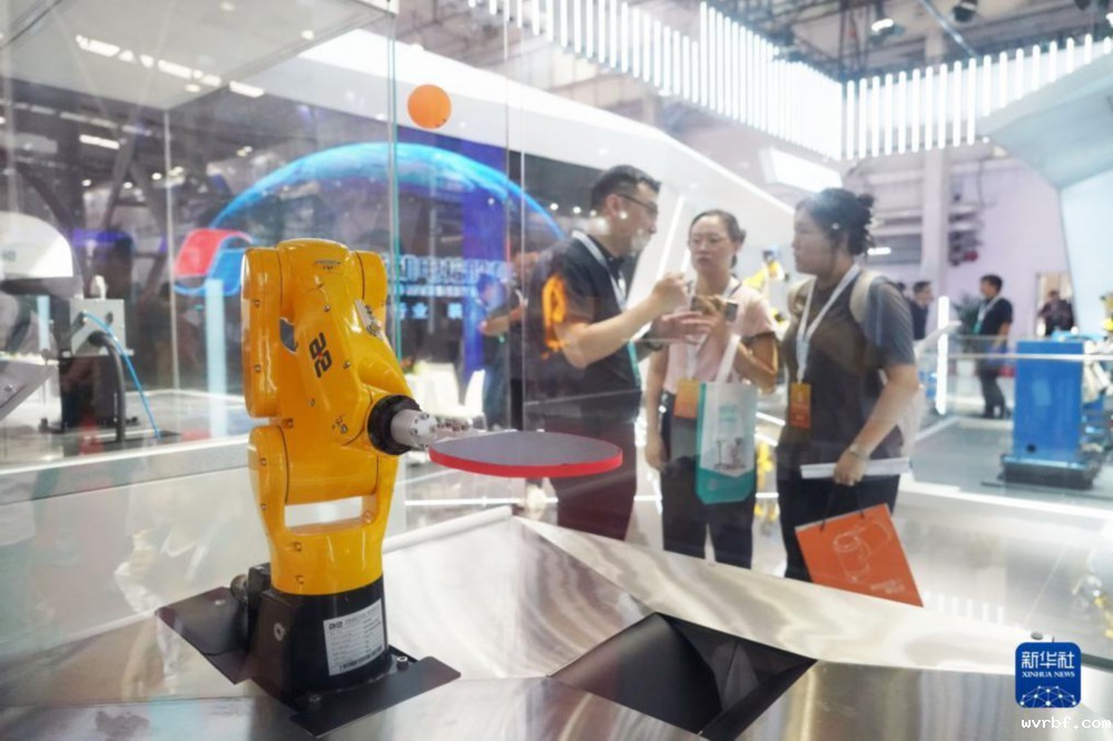 8月16日,在2023世界机器人大会现场,智能机器人在打乒乓球。