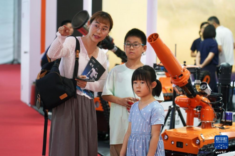 8月16日,在2023世界机器人大会现场,具有防火防盗功能的巡逻机器人在执勤。