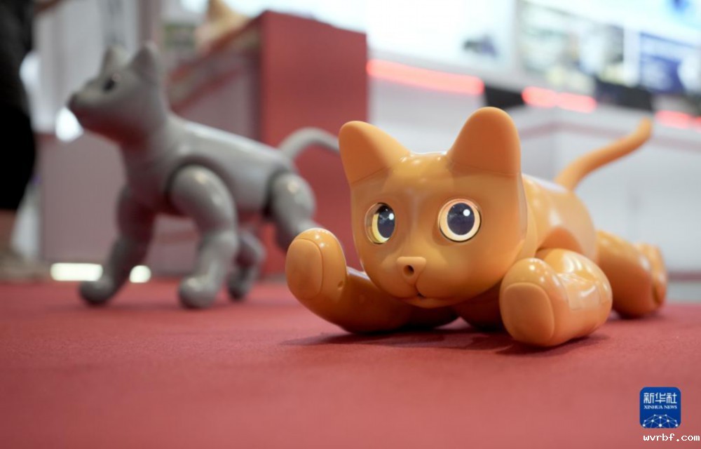 这是8月16日在2023世界机器人大会上拍摄的仿生陪伴机器猫。