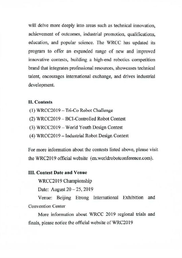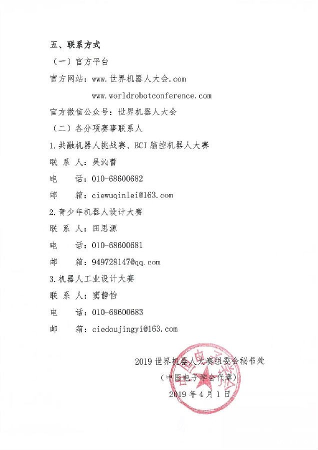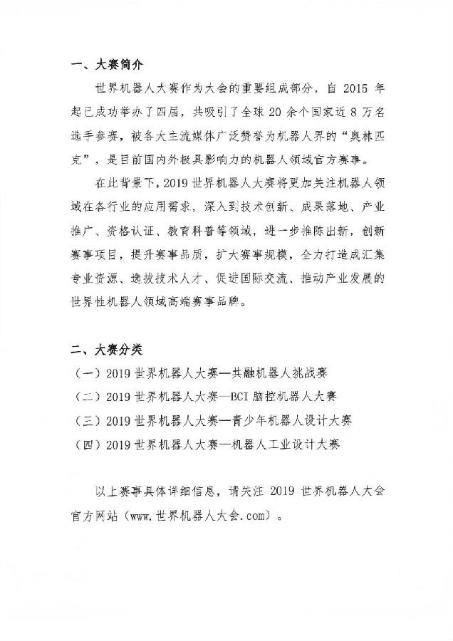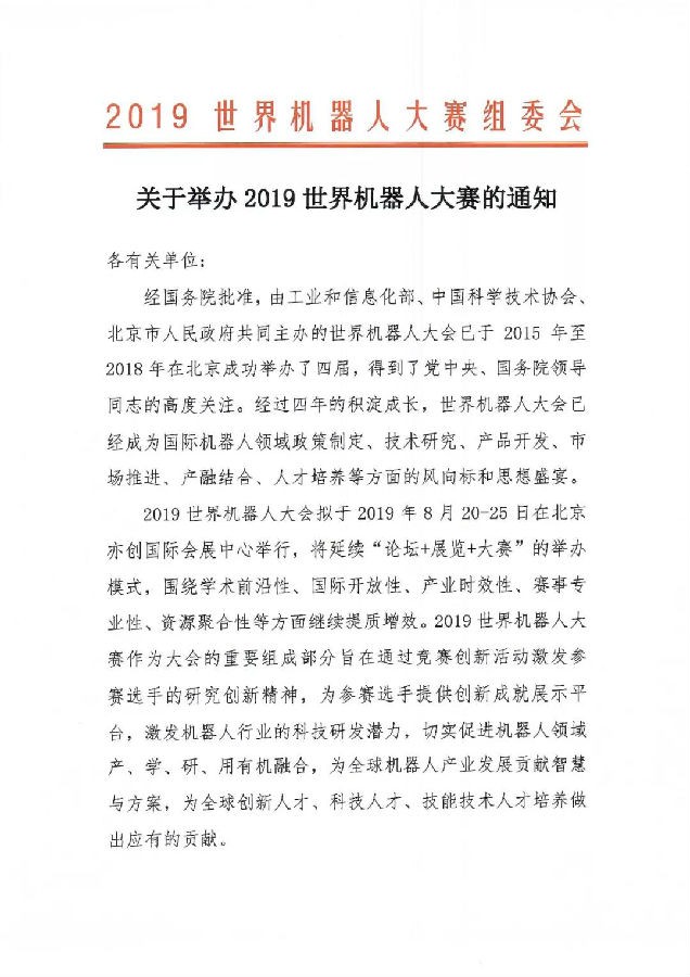 关于举办2019世界机器人大赛的通知